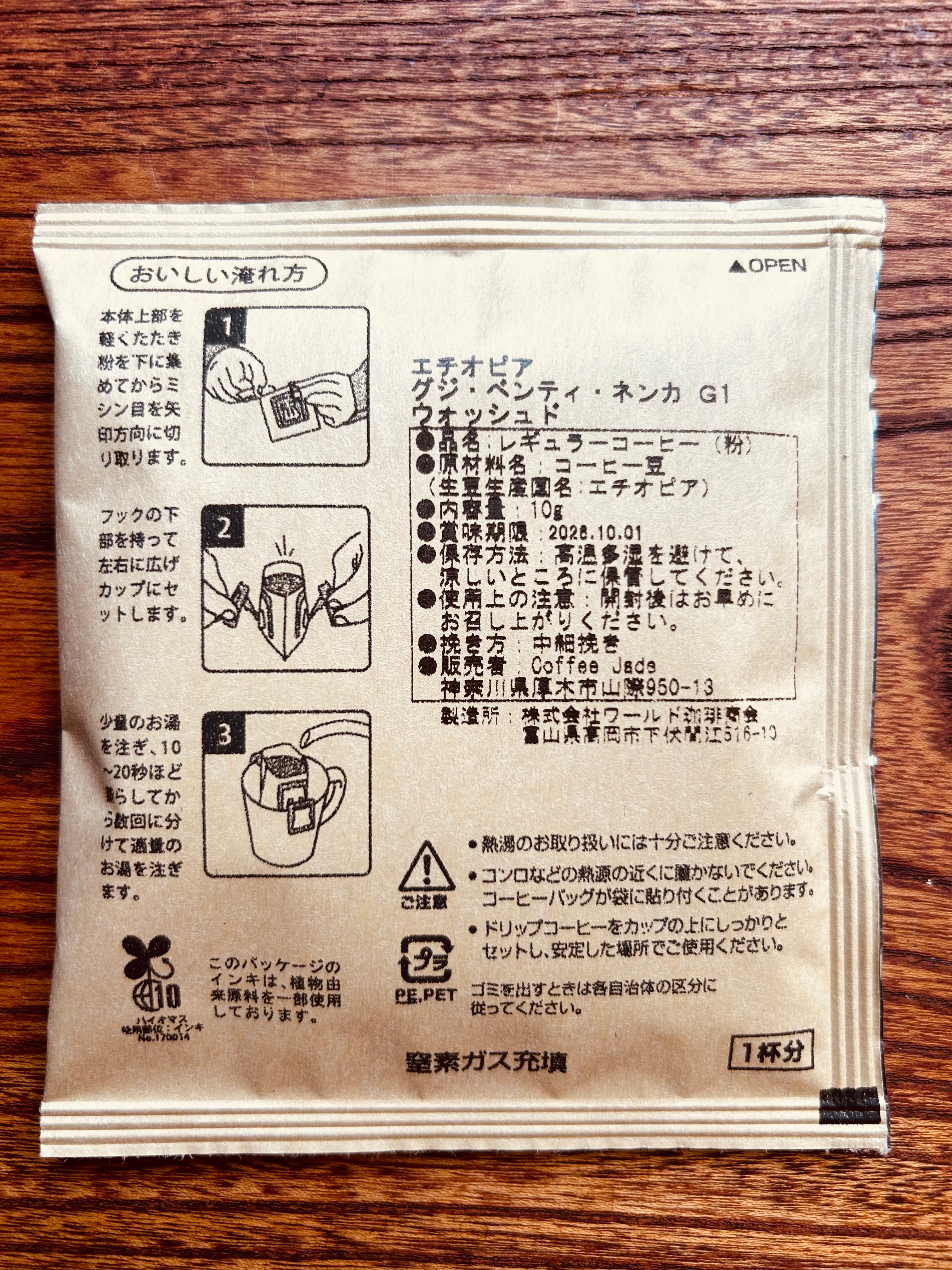 エチオピア グジ・ベンティネンカをドリップバッグにしました。